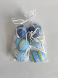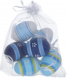 Decoratieve plastic eieren die je huis verfraaien. Elk ei meet 6 cm en de verpakking bevat 6 stuks in een elegante organza zak.