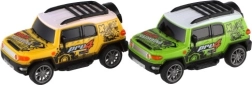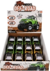 Leuk terreinwagentje voor kleine bestuurders met dubbelzijdig terugtrekmechanisme, compact formaat van 11 cm en duurzame kunststof uitvoering. Verkrijgbaar in twee kleurvarianten, ideaal voor kinderen vanaf 3 jaar.