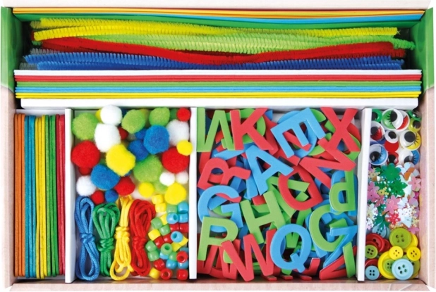 - Diverse materialen zoals papier, foam, pijpenragers, knopen, oogjes en veel meer.