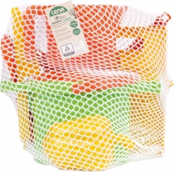 De duurzame mix van plastic en hout voelt prettig aan en heeft een subtiele houtgeur. De set is opgeborgen in een net van biologische katoen, wat de milieuvriendelijkheid onderstreept. Alle onderdelen zijn ontworpen voor kleine kinderhanden, zijn gemakkelijk schoon te maken en bestand tegen dagelijks spel.