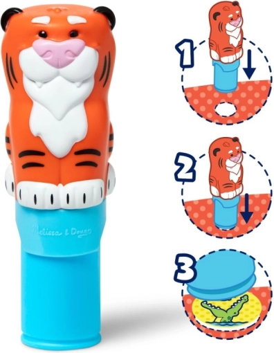 De stempel in de vorm van een speels tijgertje laat kinderen geweldige stickers maken met één druk op de knop. Plaats de stempel op elk oppervlak en er verschijnt een kleurrijke sticker met junglemotieven. De set bevat tot 300 stickers met tijgerthema’s en andere jungle-dieren, waardoor de stempel een geweldige keuze is voor kinderen vanaf 3 jaar.