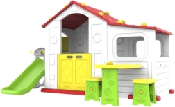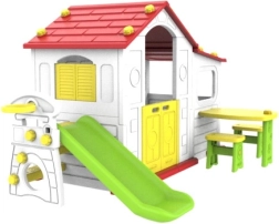 Ontdek de magie van het tuin speelhuis dat niet alleen ruimte biedt om te spelen, maar ook de creativiteit van kinderen bevordert. Dit kleurrijk plastic speelhuis gemaakt van hoogwaardig HDPE-materiaal biedt geweldige duurzaamheid en flexibiliteit. Alle wanden zijn van dubbelwandig plastic, wat de stabiliteit en veiligheid van de constructie verhoogt.