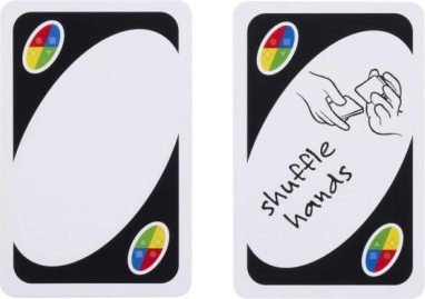 Drie herschrijfbare jokerkaarten laten je nieuwe effecten aan het spel toevoegen. Schrijf, wis en varieer de regels naar de stemming van de groep.