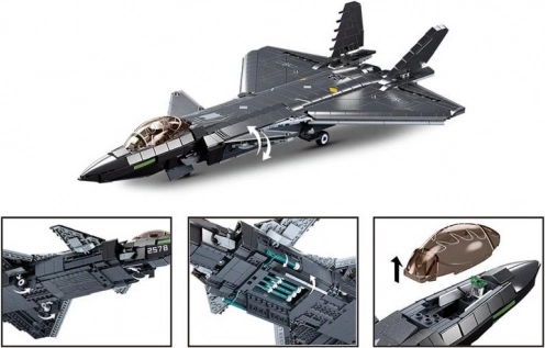 Bouw het iconische stealth-toestel met het J-20-model op schaal 1:44. Deze Sluban-bouwset biedt 1007 onderdelen, een metalen titaanzilveren look, een afneembare cockpit met pilotenminifiguur en een inklappbaar landingsgestel met geïntegreerde raketten. Compatibel met andere merken en gemaakt van duurzaam ABS-kunststof voor een lange levensduur en eindeloze uitbreidingsmogelijkheden.