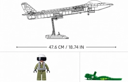 Dankzij meer dan duizend onderdelen geniet je van een doordachte constructie: een afneembare cockpit voor de piloot, inklapbare wielen met openend landingsgestel en geïntegreerde raketten ondersteunen de authentieke look. Voorste canards en achterste bovenste vleugels met verstelbare stand geven het model dynamiek, alsof het klaar is voor de start.