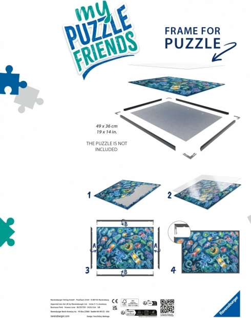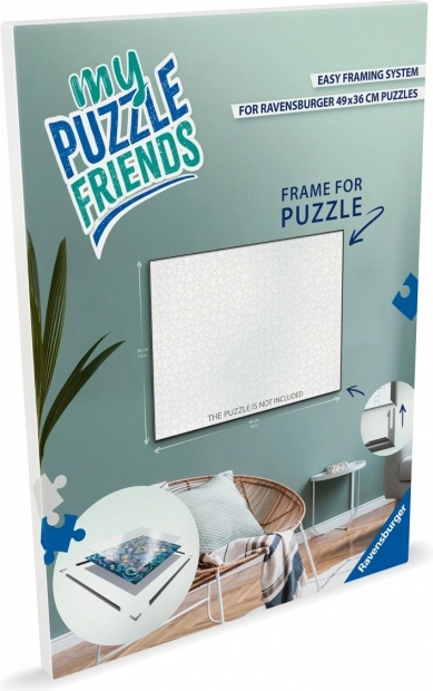 De zwarte kunststof lijst van Ravensburger biedt inlijsting tot een maximale grootte van 500 stukjes, wat flexibel gebruik voor verschillende formaten mogelijk maakt. De lijst kan zowel verticaal als horizontaal worden opgehangen, wat zorgt voor veelzijdige inzet. Je kunt de puzzel eenvoudig direct op de meegeleverde kartonnen achterplaat leggen en vervolgens fixeren met het bijgeleverde plexiglas.