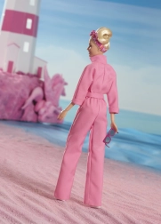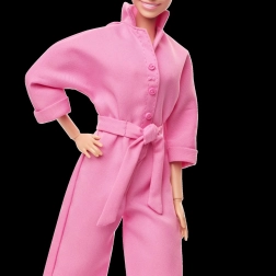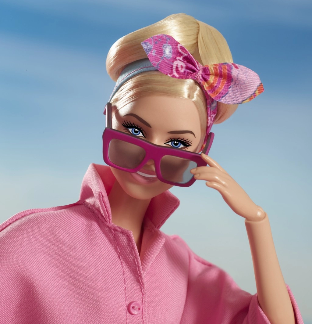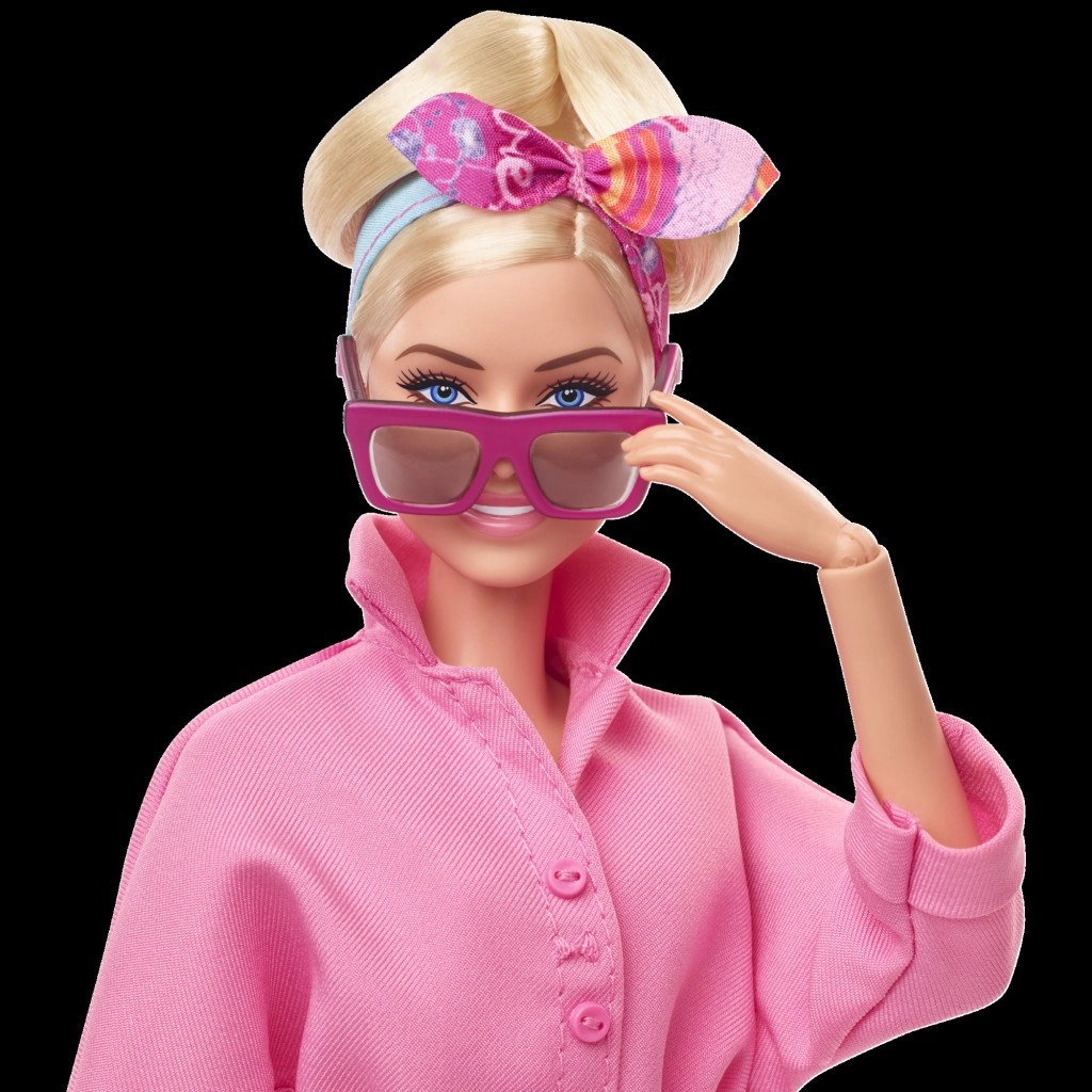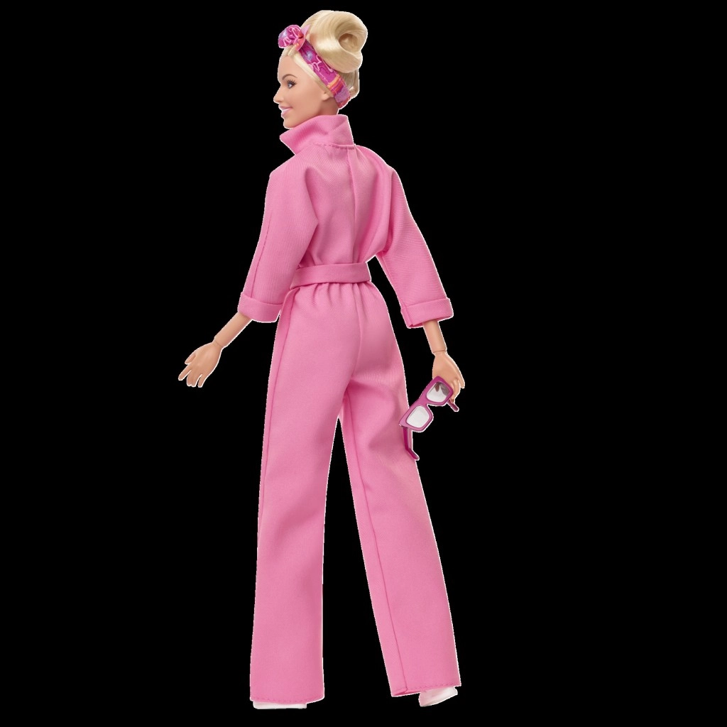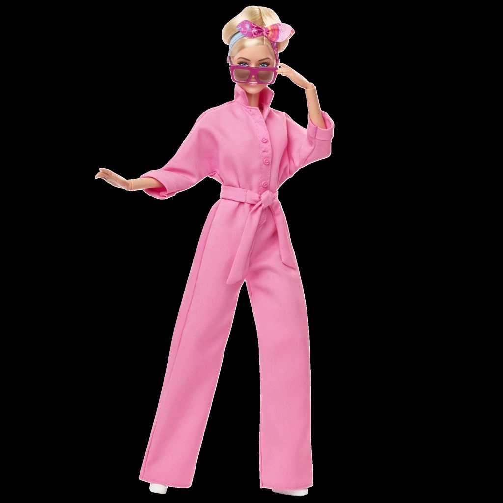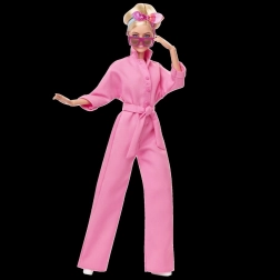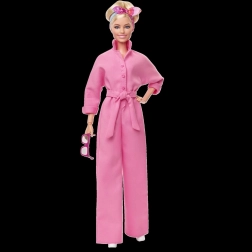 Maak kennis met de iconische Barbie-pop, geïnspireerd op de film Barbie The Movie en gemodelleerd naar Margot Robbie. Deze verzameleditie valt op door een roze jumpsuit, grote zonnebril en een haarsjaaltje. Ideaal als cadeau voor fans en verzamelaars, inclusief een standaard voor stijlvolle presentatie.