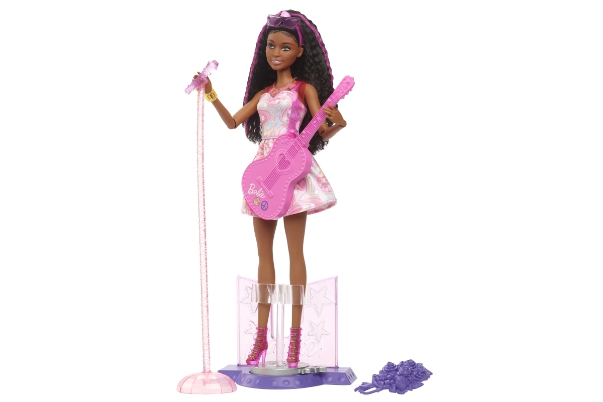 Barbie 65th Anniversary Pop Star Career Doll en 10 accessoires, inclusief door beweging geactiveerd podium
