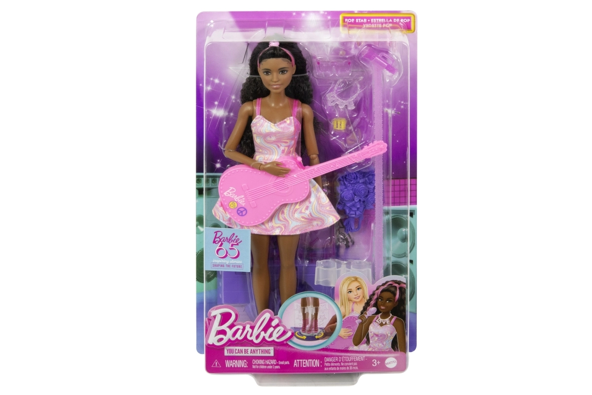 Vier 65 jaar Barbie met een collectie modepoppen die favoriete fan-carrières uitbeelden, zoals deze Popster-set. Barbie draagt een professionele outfit met iconische roze stiletto’s en wordt geleverd met 10 thematische accessoires, waaronder een bewegend podium! Kinderen kunnen rollenspellen spelen en groots dromen; verzamelaars willen ze allemaal! Elke pop wordt afzonderlijk verkocht, afhankelijk van beschikbaarheid. Poppen kunnen niet zelfstandig staan. Kleuren en decoraties kunnen variëren.