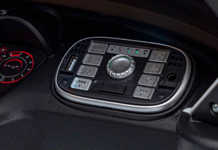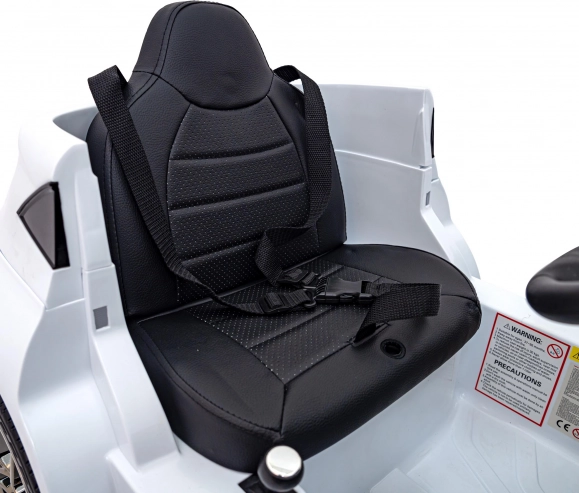 Voor maximaal comfort zijn er zachte EVA-wielen die oneffenheden dempen, en een brede zitting van eco-leer met veiligheidsgordels. Openende deuren, LED-lichten voor en achter en een gedetailleerd interieur met stuur en bedieningspaneel zullen jonge bestuurders en hun ouders bekoren. Speel muziek af via USB, MP3, Bluetooth of de radio; op het stuur zitten claxon en geluidsknoppen.