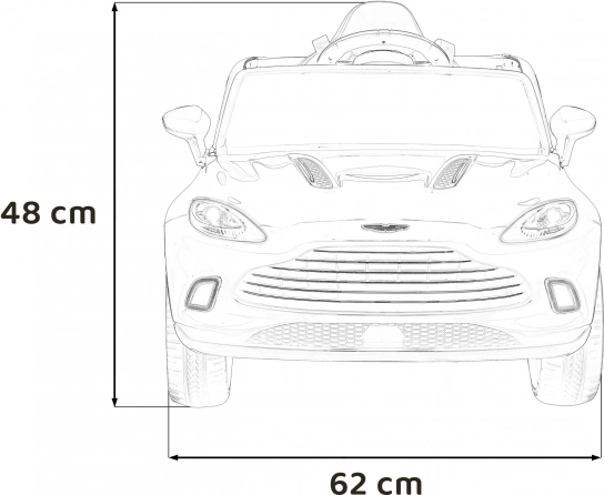 De gelicentieerde auto geïnspireerd op de ASTON MARTIN DBX combineert luxe design met veilig plezier. Dankzij 4×25 W motoren en een 12V/7Ah accu rijdt hij vlot over stoep en tuin, terwijl de soepele start (Soft Start) comfort zonder schokken garandeert. Ouders houden volledig de controle via de 2,4 GHz afstandsbediening met 3 snelheden en een noodknop Stop.