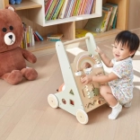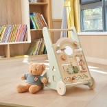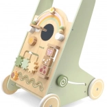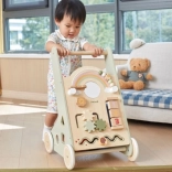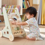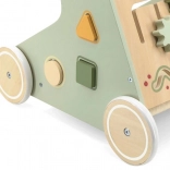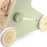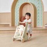 De houten duwloopwagen PolarB Viga is ontworpen om kinderen veilig te begeleiden bij hun eerste stapjes en hen tegelijk te motiveren om te ontdekken. Het voorpaneel biedt tal van activiteiten – van draaiende tandwielen en schuiflabyrinten tot vormsorteren en een spiegeltje, die op natuurlijke wijze de zintuigen en het logisch denken ontwikkelen.