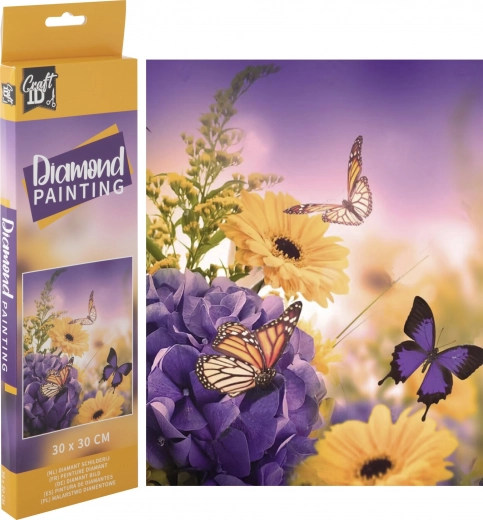 Diamantschilderen vlinderweide 30 × 30 cm. Complete set voor ontspanning en creatieve creatie met fonkelende steentjes. Ideaal om in te lijsten. Lijst niet inbegrepen.