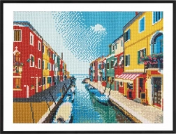 Diamond painting is creatief plezier voor iedereen – je plaatst kleine gekleurde steentjes stap voor stap op het voorbedrukte canvas met behulp van een applicatiepen. Het romantische motief van het waterkanaal komt tot leven door de glinstering van de steentjes en verandert in een originele decoratie voor je huis.