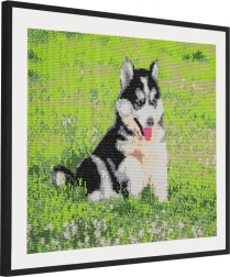 Ontdek een ontspannende, creatieve set voor diamond painting met husky-motief in het formaat 40 × 50 cm. Dankzij de eenvoudige techniek met een applicatiepen geniet je van uren rust en creëer je uiteindelijk een sprankelend kunstwerk dat je gemakkelijk kunt inlijsten en tentoonstellen. Ideaal voor beginners en gevorderden, de verpakking bevat alles wat je nodig hebt voor een vlotte start.