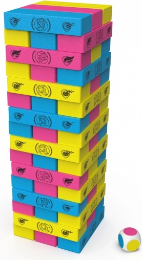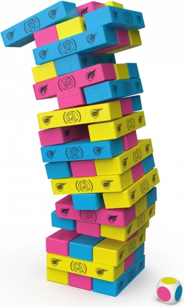 Gooi de dobbelsteen en bepaal welke kleur blok je uit de toren haalt. Om de beurt verwijdert elke speler 1 blok van de gegooide kleur, totdat een van de spelers de toren laat omvallen.