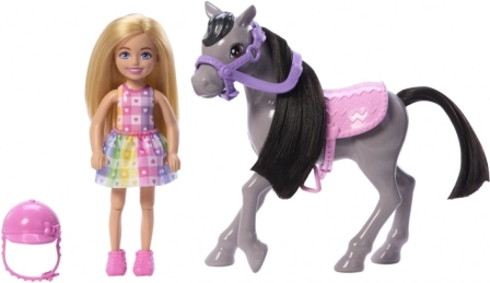 Ontdek de magie van ruiteravonturen met de mini-pop Barbie Chelsea en haar schattige grijze pony. De set bevat een roze rijhelm, een zadel met stijgbeugels en een pop met buigbare knieën voor een realistische rit. De zachte manen en staart van de pony nodigen uit tot kammen en knuffelen en stimuleren creatief spel en storytelling.