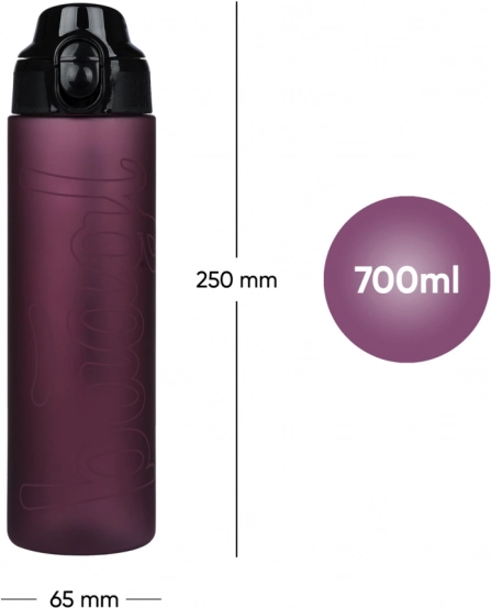 Capaciteit van 700 ml in een compact lichaam (ca. 250 × 65 mm) past in de rugzak en in een flessenhouder. Ideaal voor school en sport.