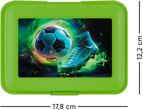 Houd je snack vers en overzichtelijk geordend. Deze groene box met aantrekkelijk voetbaldesign is perfect voor kinderen en volwassenen die eenvoudige bediening en een betrouwbare sluiting waarderen.