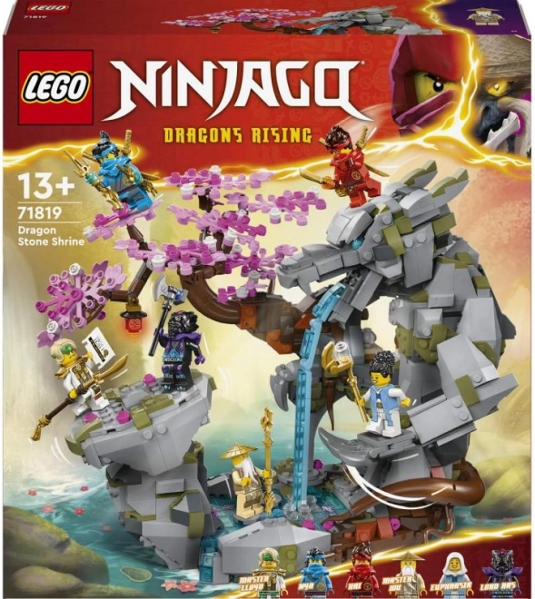 Ontdek de indrukwekkende bouwset LEGO NINJAGO Tempel van de Drakensteen voor kinderen vanaf 13 jaar. Je vindt er een stenen draak, een interactieve trainingszone, een geheime kamer, een waterval en sakura en vooral 6 minifiguren van helden en schurken voor epische gevechten en een mooie display op de plank.