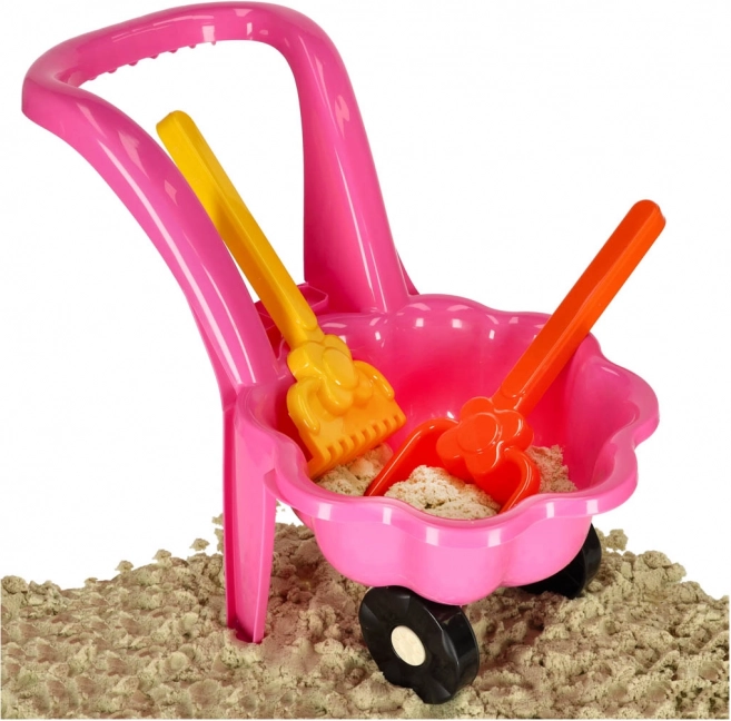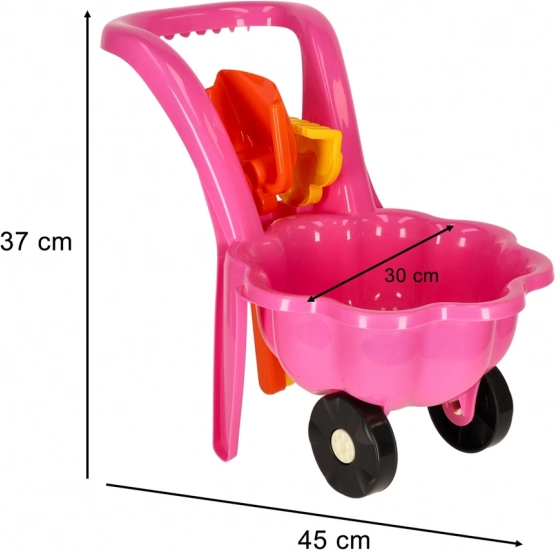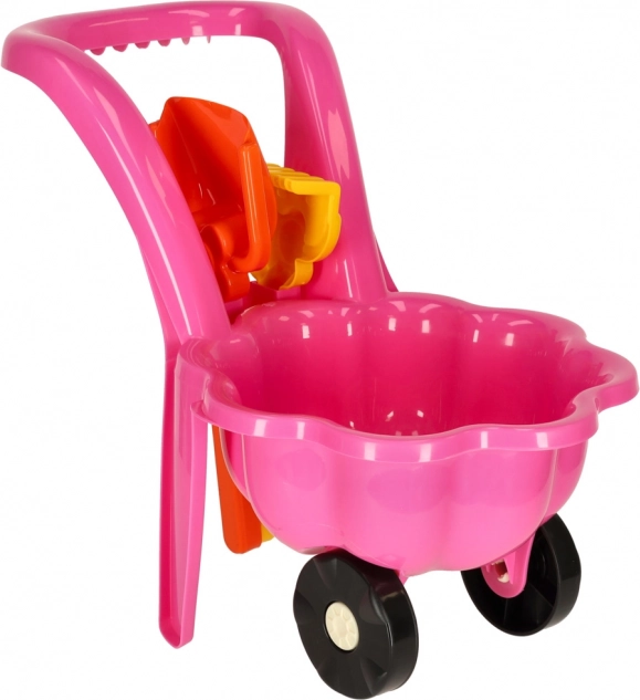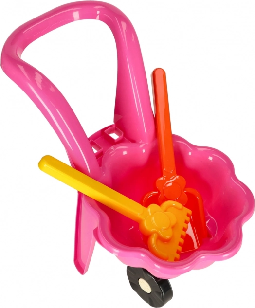 Roze kinderkruiwagen met set voor in het zand Stokrotka – schep en hark