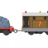 Kunststof koppelingen maken het mogelijk Toby te verbinden met andere onderdelen van de Thomas de Trein-set.