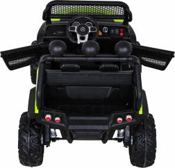 De auto is uitgerust met vier motoren van elk 35W en de mogelijkheid om te schakelen tussen twee- en vierwielaandrijving, wat uitzonderlijke prestaties op elk oppervlak mogelijk maakt.