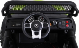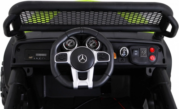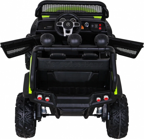 De Mercedes-Benz Unimog is bedoeld voor kinderen die houden van avontuur en offroad-rijden. Met vier krachtige motoren van 35W en instelbare vering is deze auto de ideale partner voor elke speelse rit.