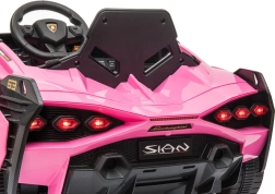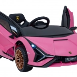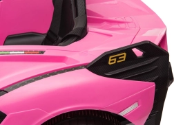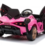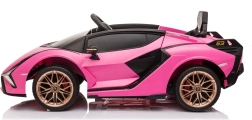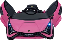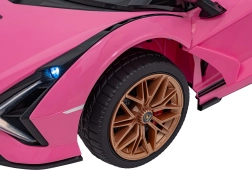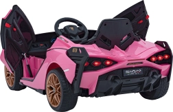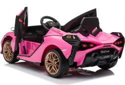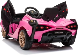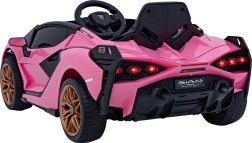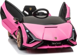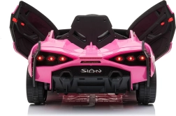 Stijlvolle elektrische kinderauto Lamborghini Sian in het roze biedt kinderen een realistische rijervaring. Voorzien van krachtige motoren, zachte EVA-banden, soepel wegrijden, LED-verlichting en 2,4 GHz afstandsbediening voor veilige fun onder ouderlijk toezicht. Het comfort wordt verhoogd door een zitje van eco-leer en een uitgebreide audiopaneel met USB/MP3/SD/AUX.