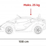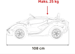 Kleine bestuurders zullen het iconische design van de Lamborghini Sian waarderen met schaardeuren, realistische details en heldere LED-lampen voor en achter. De auto wordt aangedreven door een 12 V/7 Ah-accu en vier motoren (2×18 W voor en 2×35 W achter) die samen zorgen voor een vloeiende en leuke rit.