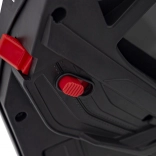 Ouders waarderen de veiligheidsfeatures zoals de 2,4 GHz afstandsbediening met drie snelheden en Stop-functie, daarnaast soft-start zonder rukken en een veiligheidsgordel op de comfortabele stoel van zwart eco-leer. Zachte EVA-banden dempen oneffenheden en bieden goede grip.