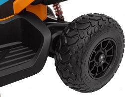 De stijlvolle elektrische kinderquad van McLaren biedt krachtige prestaties, comfort en veiligheid voor jonge rijders. Dankzij de aandrijving 4×35 W, de 12 V 10 Ah accu en de soepele start kan hij ook oneffen terrein aan. Grote EVA-wielen met een diameter van 31 cm en vering zorgen voor stille en stabiele ritten, terwijl LED-verlichting en een audio-paneel met MP3/USB/AUX voor extra plezier zorgen. Ouders zullen de 2,4 GHz afstandsbediening met drie snelheden en noodknop STOP waarderen.