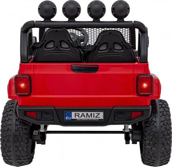 Het sterke en stabiele model OFF-ROAD 3.0 is gemaakt voor avontuur. Dankzij vier 35 W-motoren kan hij overweg met oneffen terrein; de hoge bodemvrijheid (26 cm) en grote, zachte EVA-banden garanderen comfortabel en stil rijden. De 2,4 GHz afstandsbediening laat ouders de rit onder controle houden – inclusief de veiligheidsknop STOP en keuze uit drie snelheden.