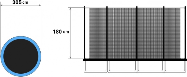 Dankzij de universele bevestiging is het net compatibel met trampolines van verschillende fabrikanten met 4 tweebenige poten (8 palen). De hoogte van 180 cm voorkomt effectief dat men van het springvlak valt en de waterbestendige uitvoering zorgt voor een lange levensduur, ook bij gebruik buitenshuis.