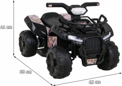 Deze elektrische kinderquad is een uitstekende keuze voor de eerste ritten. De robuuste kunststof constructie, de grote wielen van 19 × 8 cm en het comfortabele zadel zorgen voor stabiliteit en comfort. Eenvoudige bediening met een gaspedaalknop op het stuur is ideaal voor jongere kinderen.