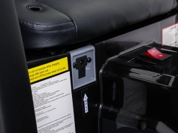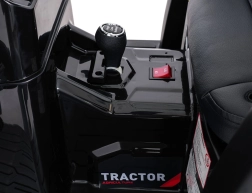 Veiligheid staat voorop dankzij de 2.4G afstandsbediening met Stop-knop voor onmiddellijk stoppen. Comfort wordt verzekerd door de brede stoel van ecoleer en het overzichtelijke bedieningspaneel. Voor extra plezier is er een audiopaneel met MP3, USB, Bluetooth, ingebouwde melodieën en geluiden op het stuur. De voorste LED-lampen zorgen voor een realistische look en betere zichtbaarheid.