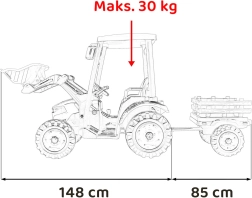 De elektrische tractor MEGA D68 met aanhanger is een uitstekende keuze voor kinderen die graag boerderijspelletjes spelen. Hij biedt een soepele zachte start, keuze voor vooruit/achteruit en twee snelheden. De grote aanhanger vergroot de speelmogelijkheden en maakt het mogelijk om speelgoed of kleine spulletjes in de tuin te vervoeren.