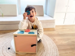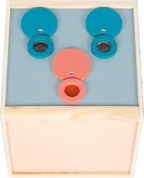 Deze moderne houten sensorische en voeldoos is ontworpen om de zintuigen van uw kind te stimuleren. Dankzij twee zijopeningen en opklapbare kleppen bovenaan kunnen kinderen op verschillende manieren ontdekken – via tast, zicht, luisteren en geur. De doos is uitstekend voor de ontwikkeling van motorische vaardigheden en is ook geschikt voor ergotherapeutische doeleinden.