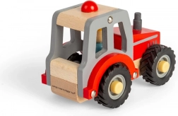 Deze tractor is ideaal voor de ontwikkeling van de motorische vaardigheden van kinderen. De constructie combineert natuurlijk hout met rode en grijze lak, wat zorgt voor een aantrekkelijk uiterlijk.