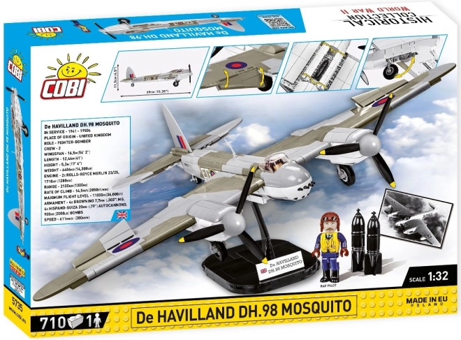 Bouw het legendarische Britse vliegtuig uit de Tweede Wereldoorlog – COBI De Havilland DH.98 Mosquito op schaal 1:32. Met deze bouwset krijg je een realistisch model met rijke details, beweegbare elementen en een verzamelbaar pilootfiguurtje. Ideaal voor liefhebbers van geschiedenis, luchtvaart en bouwsets. Geniet van de hoogwaardige afwerking en authentieke RAF-kleuren die van dit model zowel een indrukwekkend pronkstuk als een leuk bouwproject maken.
