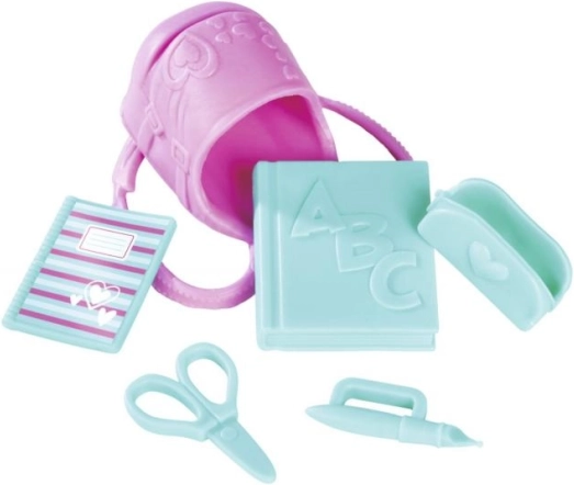 Bevat scholspullen zoals een schrift, schaar, etui, pen en leerboek voor realistisch spel.