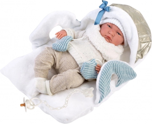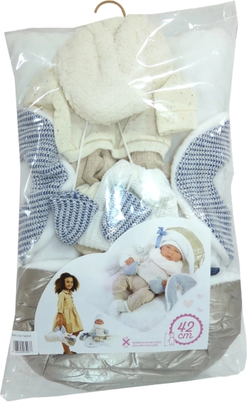 Deze elegante NEW BORN poppenoutfit valt op door de zorgvuldige afwerking en het tijdloze design. In de set vind je op elkaar afgestemde gebreide en textiele items voor dagelijks en winterstyling, aangevuld met een zachte mat met capuchon en praktische riemen, zodat je de pop eenvoudig kunt meenemen.