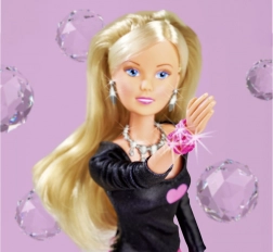 De STEFFI LOVE – Jewelry Shop pop brengt kinderen een wereld vol fantasie, mode en glitter. Steffi betovert met een glinsterende tweedelige outfit met een hartprint op de avondtop en een bijpassende roze rok. De rijke set sieraden en accessoires stimuleert creatief stylen en de ontwikkeling van de kinderlijke verbeelding.