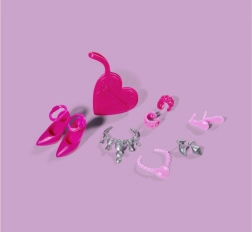 In de verpakking vind je 2 kettingen, 2 paar oorbellen, 2 armbanden, een hartvormige handtas en hoge hakken voor eindeloze stylingmogelijkheden.
