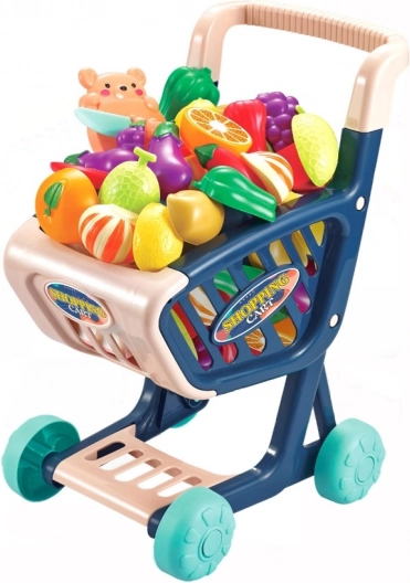 Schattig kinderwinkelwagentje met rijk accessoires, ideaal voor kleine huishouders en jonge winkeliers. Bevat plastic fruit en groenten die met veilige hulpmiddelen “gesneden” kunnen worden. Het speelgoed stimuleert de ontwikkeling van de fijne motoriek, verbeeldingskracht en leren over voedsel via leuk winkelspeelgoed.