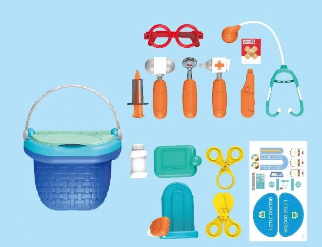 Leuke speelset voor kleine dokters met 15 accessoires in een praktische mand – met onder andere een stethoscoop, injectiespuit, bril, pleisters en meer onmisbare items. Stimuleert de fantasie, rollenspel en fijne motoriek van kinderen.