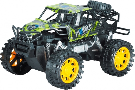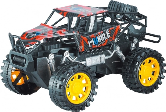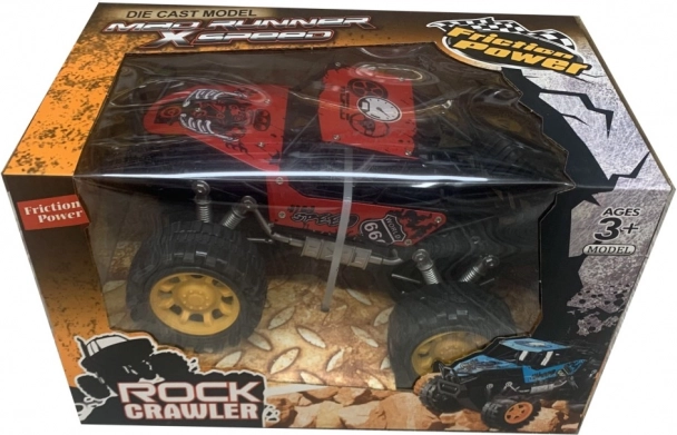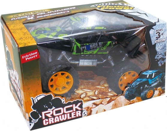 Dit stevige rock-crawlermodel is gemaakt voor avontuur. Dankzij de frictieaandrijving hoef je het autootje alleen maar over het oppervlak te trekken en los te laten – het schiet meteen vooruit. De grote terreinwielen en het verhoogde chassis kunnen obstakels, tapijten en buitenoppervlakken aan.