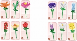 Stel een boeket samen van plastic onderdelen in verschillende kleuren en vormen. Elke bloem is uniek en biedt eindeloze creatieve mogelijkheden.