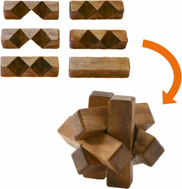 Eerst moet je uitvinden hoe je de puzzel zonder kracht uit elkaar haalt. Vervolgens ontdek je hoe je de puzzel weer zo in elkaar zet dat hij zijn vorm behoudt. Geschikt voor kinderen vanaf 7 jaar.