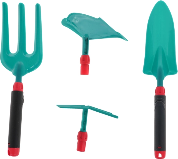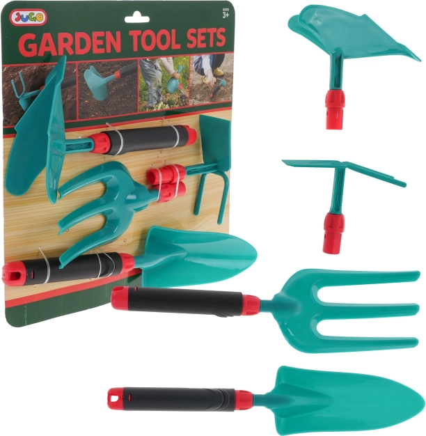 Deze 4‑delige set voor kleine tuiniers stimuleert buitenspelen, leren en de ontwikkeling van de fijne motoriek. Kinderen kunnen veilig graven, scheppen en wieden dankzij gereedschap zonder scherpe randen en met een comfortabele grip.